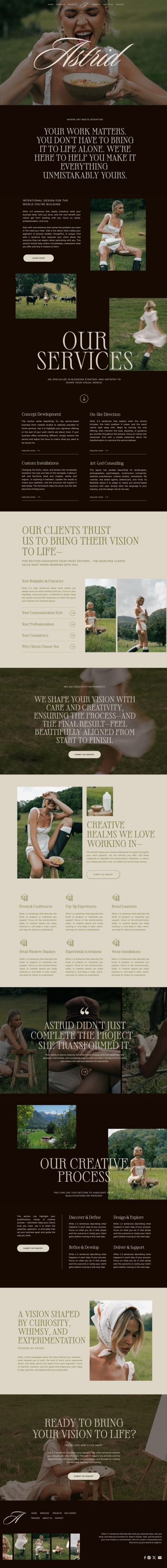 astrid is a one-page showit template designed to showcase your work with clarity and editorial style. it blends storytelling, strategy, and visuals so your brand feels elevated and unmistakably yours. perfect for creatives who want a site that converts without feeling complicated.